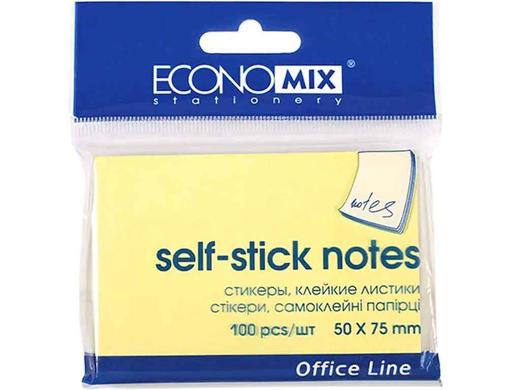 Блок для нотаток з клейким шаром 50х75мм 100арк. жовтий ТМ Economix
