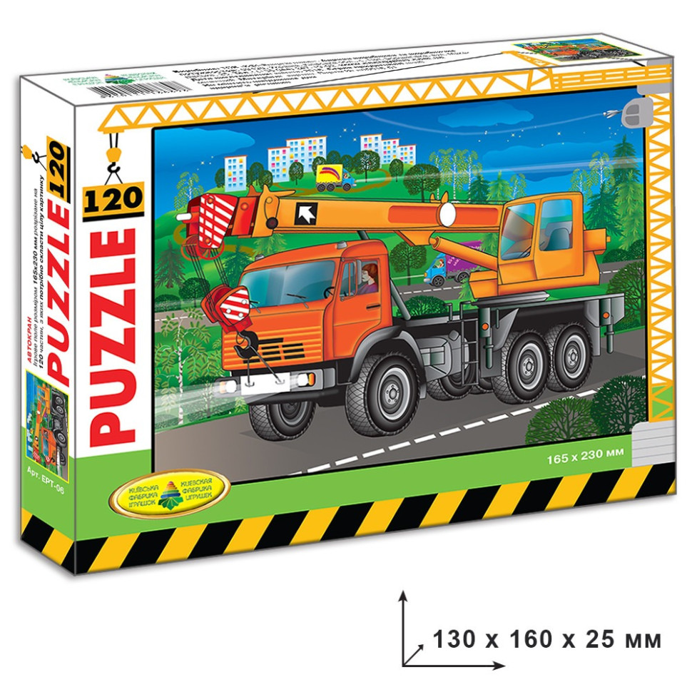 Яркий и интересный, детский набор пазлы 120, вып. 6 (ЕРТ -06) Автокран в кор. 86898 – одна из тех забав, без которых невозможно представить себе детский уголок. Детальки игры выполнены из экологически чистого сырья, которое не имеет неприятных запахов и абсолютно безопасны для малышей. Проводя время с пазлами, Ваш непоседа станет более усидчивым, терпеливым, внимательным и самостоятельным. В набор входит 120 элементов, из которых малыш составит картинку размером 165х230 мм. Интереснейшее занятие не только погрузит Вашего непоседу в захватывающий процесс складывания пазлов, но и поспособствует тренировке мелкой моторики пальчиков, воображения, пространственного мышления и сенсорики. Концентрируясь на одной задаче, ребенок забывает обо всем не свете, отстраняется от негативных переживаний, что особенно полезно для психоэмоционального состояния. В коллекции украинской торговой марки «Энергия Плюс» представлено множество вариантов пазлов для самых требовательных маленьких умников.