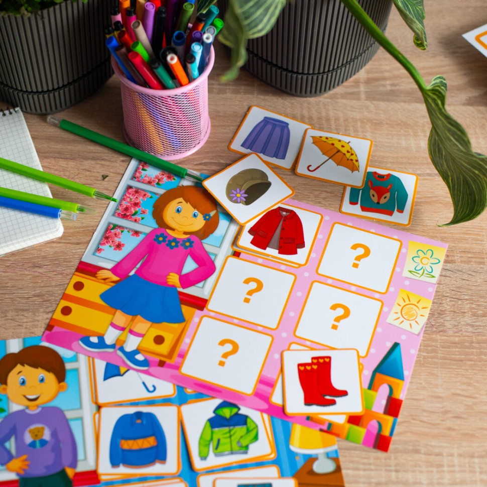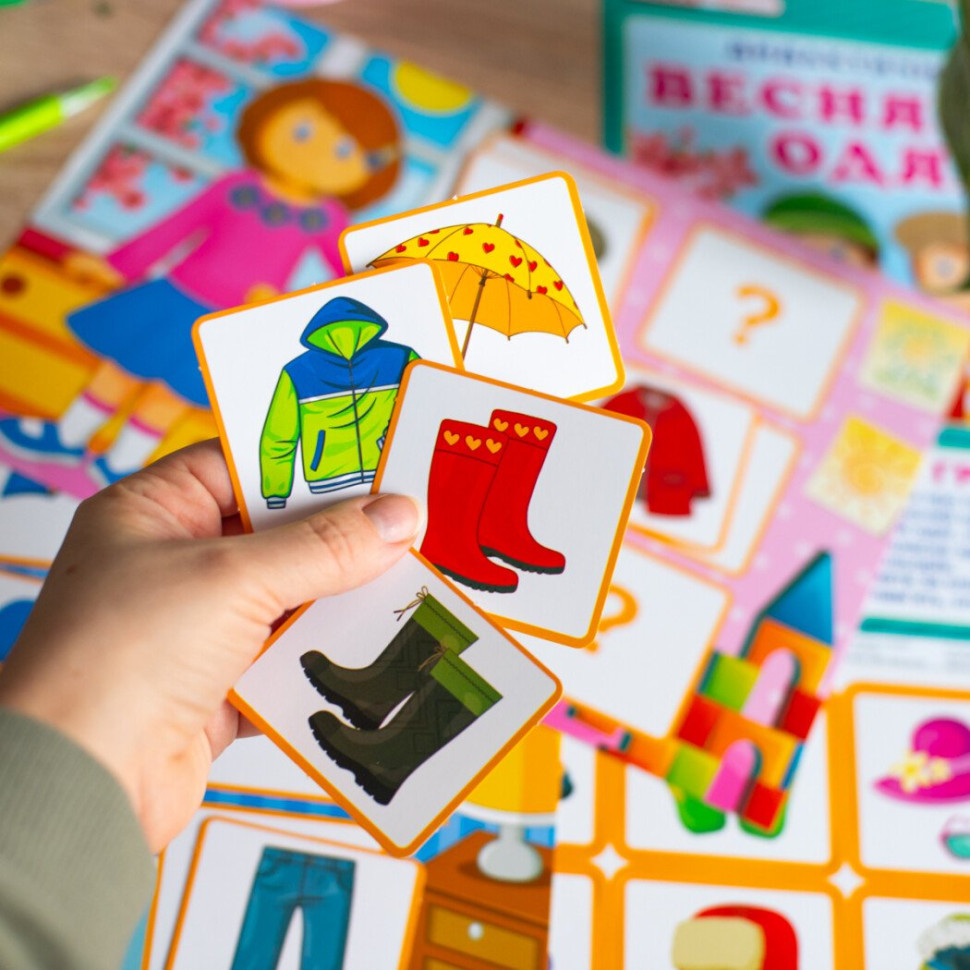 Дидактическая игра "Весенняя одежда" 15211020, 2 поля для игры, 24 карточки