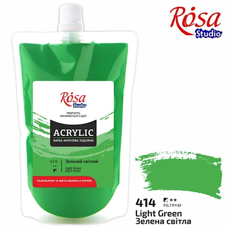 Краска акриловая Зеленая светлая 323200414 (код 414), 200 мл