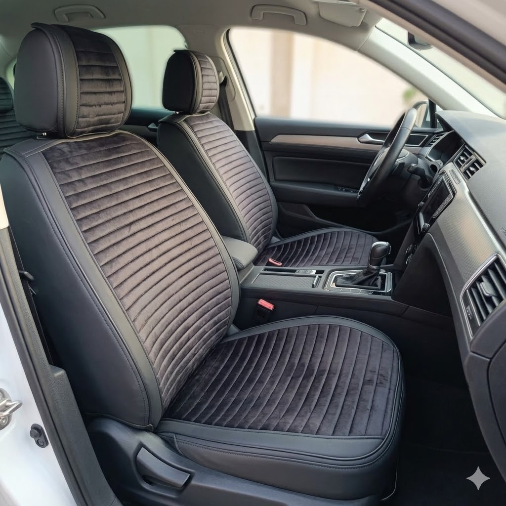 Накидки сидінь "Алькантара" VIP Чорна/Полоса/без бічної підтримки(1 шт) з Підголовником (водійська)