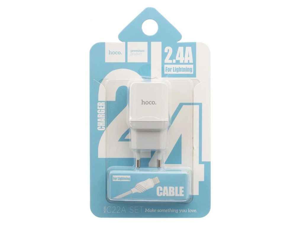 Мережевий зарядний пристрій для iPhone Lightning C22A 2.4A/1USB/блістер білий ТМ HOCO