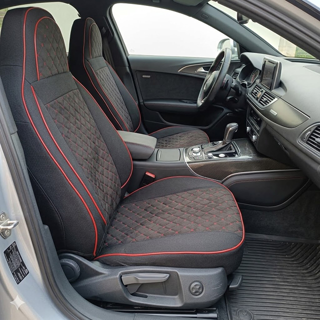 Чохли "PILOT" B тканина чорн. + тканина чорна Ромби червона нитка