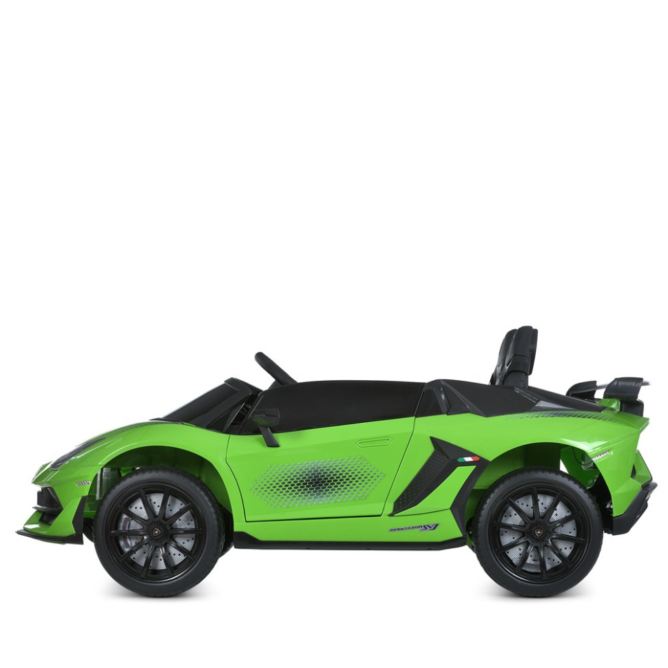 Артикул М6026EBLRБренд NO TM/LamborghiniТип машинаРазмеры товара длина 133смширина по зеркалам/ колесам 78см/82смвысота 55смвес 26,8кграсстояние от сиденья до педалей 35смДопустимая нагрузка По весу до 60кгПо возрасту от 3-8 летМотор Количество/V/RPM 4*35W/ 24V / RPM13500Батарея Количество/V/AH 2*12V9AHИндикатор батареи +Зарядка V/mA 24V/1000mAВремя на зарядку 8-12чИндикатор зарядки +Старт Старт Старт кнопкаЗвук во время старта +Плавный старт в обычном режиме +Скорость км/ч от 3-6км/чКоличество скоростей на панели/на пульте 1/3Педаль газа +Педаль-тормоз -Свет Фары Передние/Задние фарыПодсветка +Кнопка вкл/выкл света +Звук Музыка Музыка MP3+USBКарта памяти +Сигнал на рулеBLUETOOTH +Управление Пульт управления 2,4G (STOP BUTTON)App(приложение) +Движение вперед/назад тумблерСиденья количество мест 2Ремни безопасности 5-ти точечныеМатериал экокожаШирина посадочного места 48смКолеса Материал EVAРазмер передних колес/дисков 24см/20смРазмер задних колес/дисков 24см/20смПростой монтаж +Корпус Материал материал пластикКрыша -Амортизаторы Передние +Задние +Дополнительные функции Дверь откр. в стороныДемо-режим -Бат.ручка -Доп. Колесики -Кондиционер -Коврик -Прицеп -Дополнительные элементы -КОРОБКА Брутто/Размер 32,8кг/135-74-33смКоличество слоев 5Наличие цветного постера -Цвет картона коричневый