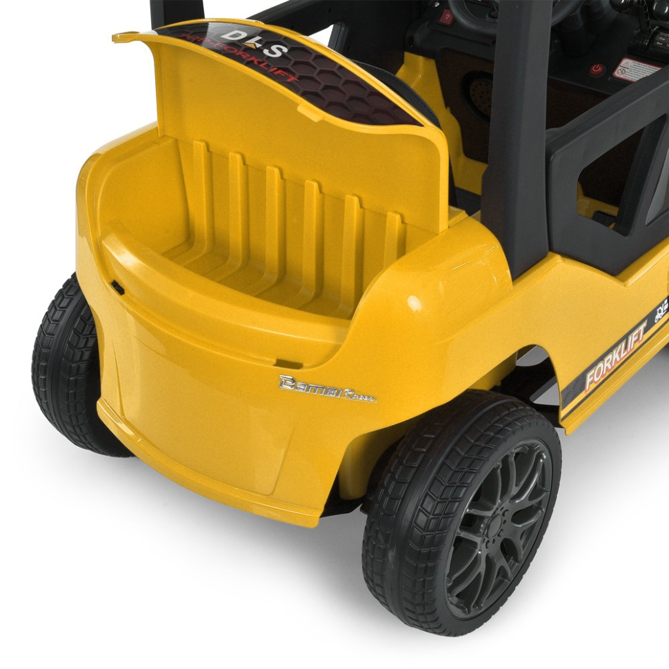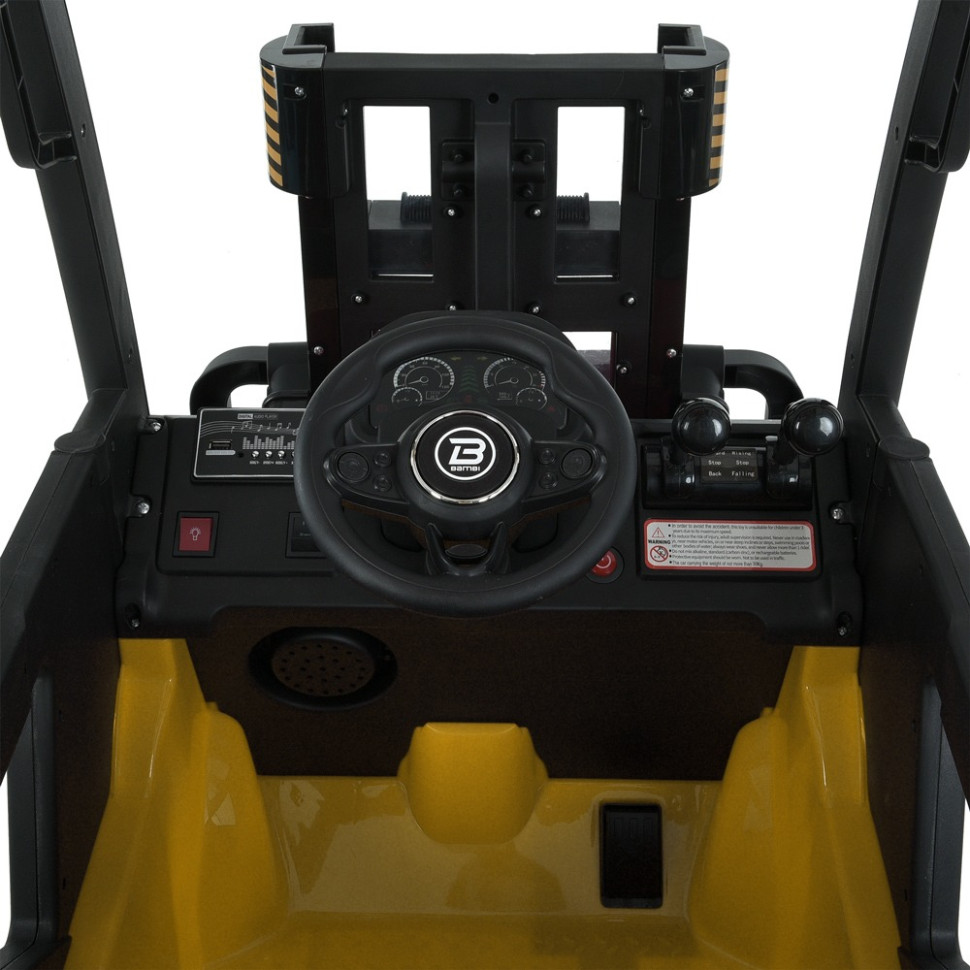 Артикул M 6063EBLRБренд Bambi RacerТип погрузчикРазмеры товара длина 146смширина по зеркалам/ колесам 63смвысота 101смвес 25,2кгДопустимая нагрузка По весу до 30кгПо возрасту от 3-8 летМотор Количество/V/RPM 2*45W/12V/RPM12000Батарея Количество/V/AH 12V7AHИндикатор батареи +Зарядка V/mA 12V/1000mAВремя на зарядку 8-12чИндикатор зарядки +Старт с кнопкиЗвук во время старта +Плавный старт в обычном режиме +Скорость км/ч 2-6км/чКоличество скоростей на панели/на пульте 1/4Ручка газа -Педаль-тормоз -Свет Фары -Подсветка -Кнопка вкл/выкл света тумблерЗвук Музыка Музыка MP3+USB, AUXКарта памяти +Сигнал на рулеBLUETOOTH +Управление Пульт управления 2,4G (STOP BUTTON)App(приложение) -Движение вперед/назад рычагСиденья количество мест 1Ремни безопасности 2-х точечныеМатериал экокожаШирина посадочного места 34смКолеса Материал пластикРазмер передних колес/дисков 27см/21смРазмер задних колес/дисков 27см/21смПростой монтаж +Корпус Материал материал пластикКрыша +Амортизаторы Передние -Задние +Дополнительные функции Двери открывающиеся. +Демо-режим +Бат.ручка -Доп. Колесики -Кондиционер -Коврик -Прицеп -Дополнительные элементы Рычаг для подъема груза вилами, управление, крыша, багажникКОРОБКА Брутто/Размер 28,9 кг/99-64-52смКоличество слоев 5Наличие цветного постера - наличие цветного постераЦвет картона коричневый
