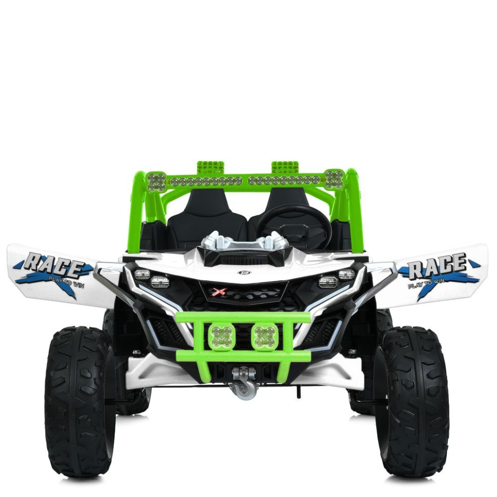 Артикул M 6146EBLRБренд No TM/Land CruiserТип джипРазмеры товара длина 119смширина по зеркалам/ колесам 74/80смвысота 68смвес 25кгРасстояние от сиденья до педалей 32 смДопустимая нагрузка По весу до 30 кгПо возрасту от 3 летМотор Количество/V/RPM 4*45W / 12V / RPM15000Батарея Количество/V/AH 12V12AhИндикатор батареи +Зарядка V/mA 12V/1500mAВремя зарядки 8-12 часовИндикатор зарядки +Старт Старт с кнопкиЗвук при старте +Плавный старт в обычном режиме +Скорость км/ч 3-6км/чКоличество скоростей на панели/на пульте 2/3Педаль газа +Педаль-тормоз -Свет Фары Передние/ЗадниеПодсветка -Кнопка включения/выключения света +Звук Музыка MP3+USBКарта памяти +Сигнал на рулеBLUETOOTH +Управление Пульт управления 2,4G(STOP BUTTON)App(приложение) -Движение вперед/назад кнопкаСиденья количество мест 2Ремни безопасности 5-точечныеМатериал экокожаШирина посадочного места 43смКолеса Материал EVAРазмер передних колес/дисков 28см/20смРазмер задних колес/дисков 28см/20смПростой монтаж +Корпус Материал пластикКрыша -Амортизаторы Передние -Задние +Дополнительные функции Двери открываются. +Демо-режим -Бат.ручка -Доп. Колесики -Кондиционер -Коврик -Прицеп -Дополнительные элементы картридерКОРОБКА Брутто/Размер 30кг/123-68-53смКоличество слоев 5Наличие цветного постера -Цвет картона коричневый