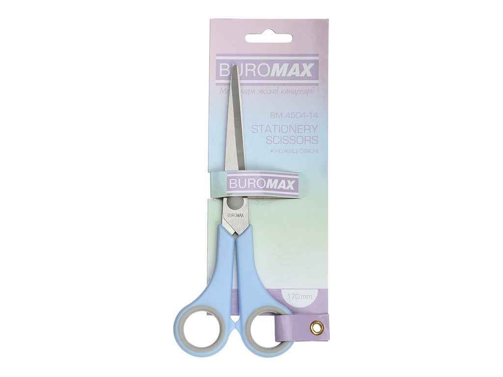 Ножиці PASTEL, блакитні, 170 мм, круглі ручки з сірими гумовими вставками, ТМ Buromax, арт. BM.4504-14
