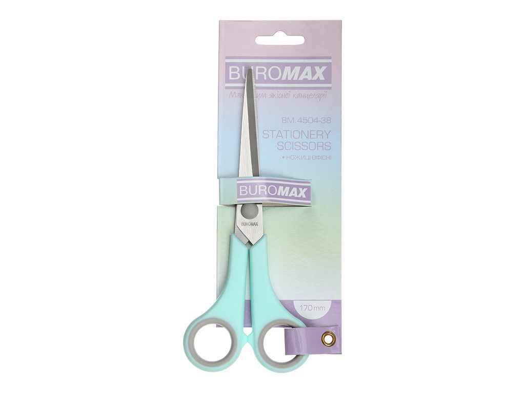 Ножиці 17см PASTEL, мятні круглі ручки, з сірими гумов. вставками BM.4504-38 ТМ BUROMAX