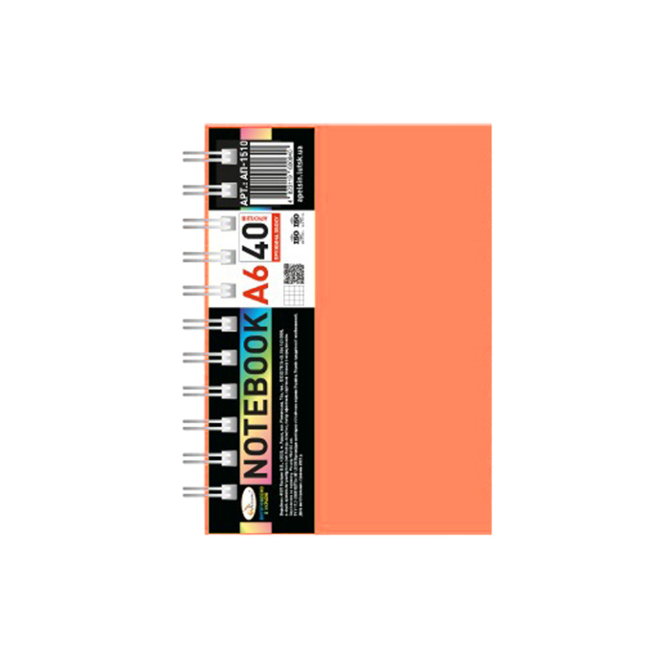 Блокнот А6 АП-1510(Orange) 40 листов, пружина боковая