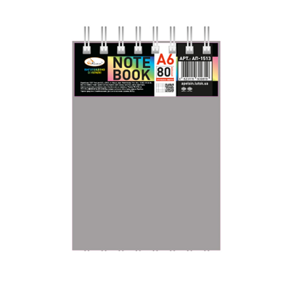 Блокнот А6 В-БП6-80(Gray) 80 листов, пружина сверху