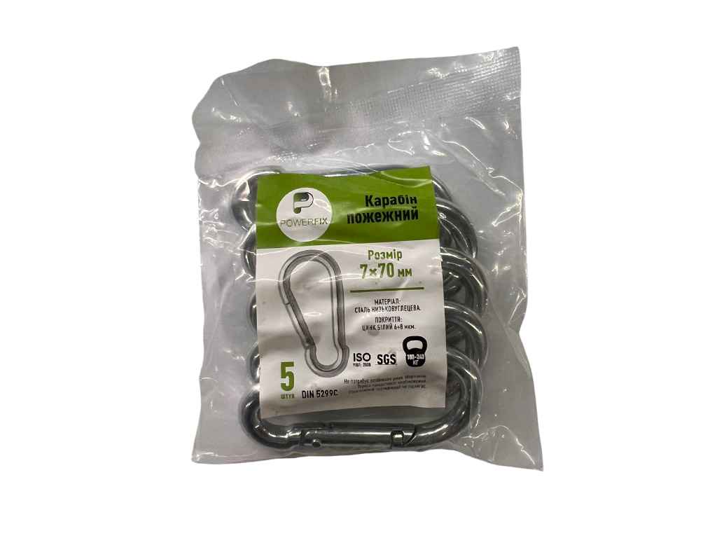 Карабiн без закрутки пожежний (5шт/уп) d=7мм L=70мм ТМ POWERFIX