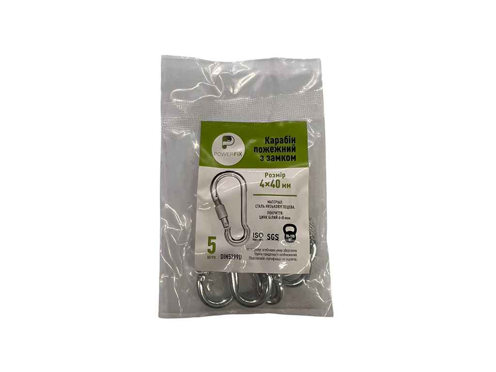 Карабiн з закруткою пожежний (5шт/уп) d=4мм L=40мм ТМ POWERFIX