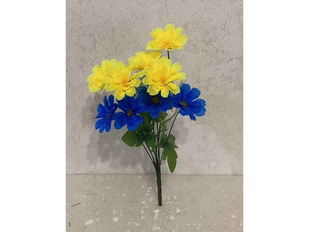 Букет штучних квітів шовк Хризантеми h-48см г-10 р-8,5см жовто-блакитний ТМ MEMORI