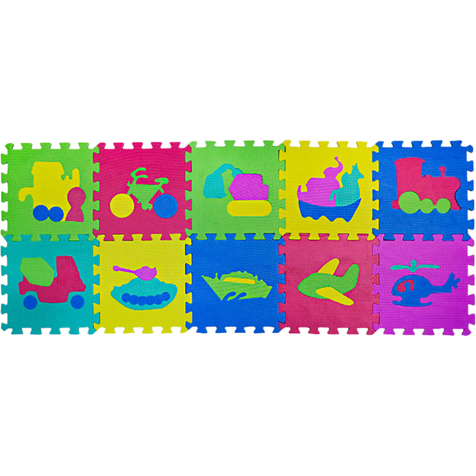 Детский развивающий коврик-пазл Транспорт EVA0632, 10 деталей, 28,5х28,5х0,8 см