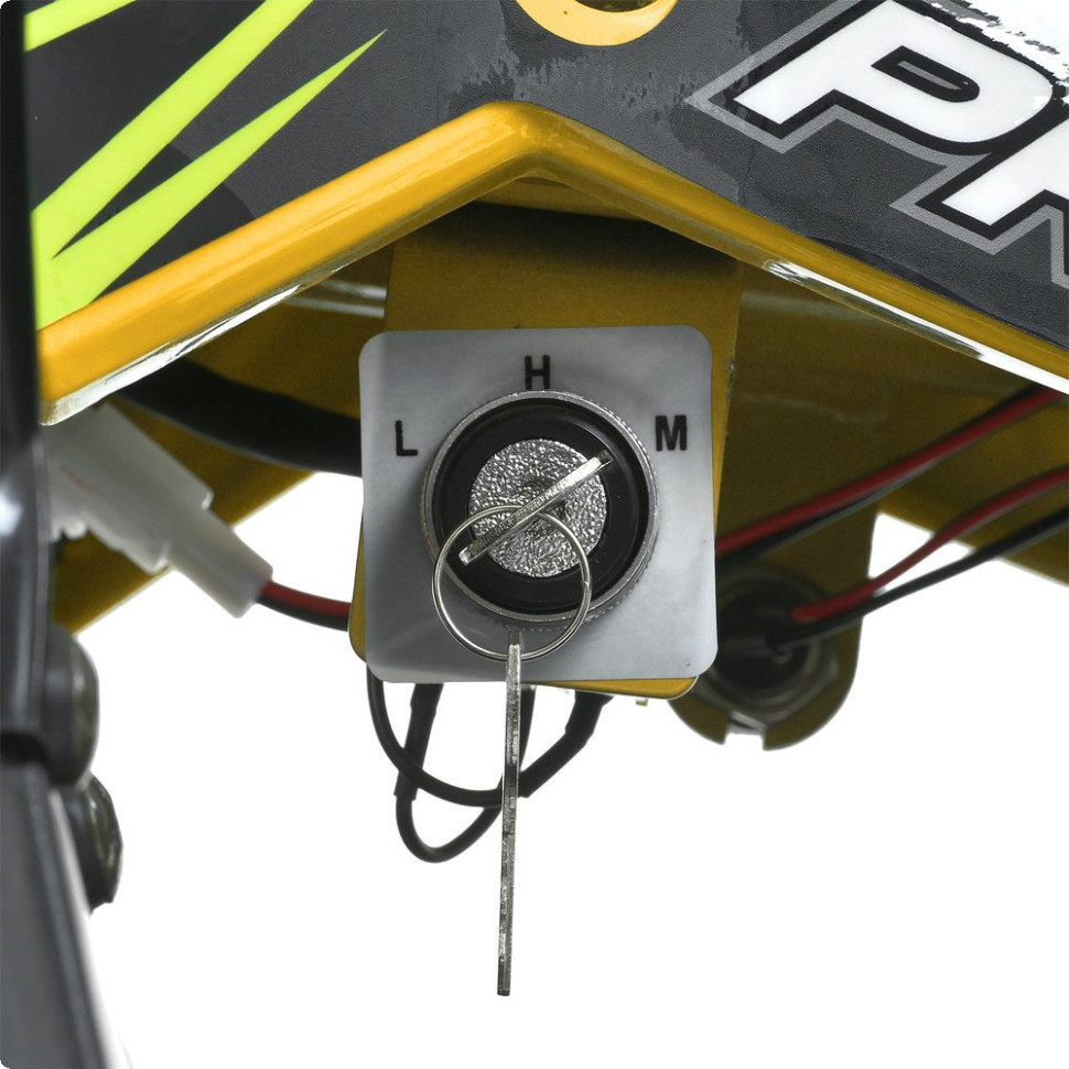 Управление: ручка газа, движение вперед/назад - переключатель, старт - поворот ключа