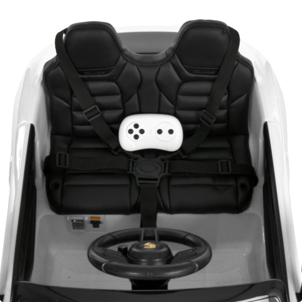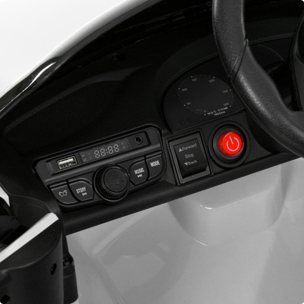 Плавный старт гарантирует мягкое начало движения без рывков. Управление возможно как ребенком с помощью педали газа и тумблера вперед/обратно, так и родителями через пульт 2,4G с кнопкой экстренной остановки.