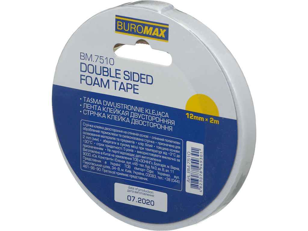 Клейка стрічка, 12мм х 2м, двостороння, на пінній основі, по 1 шт. BM.7510 ТМ BUROMAX