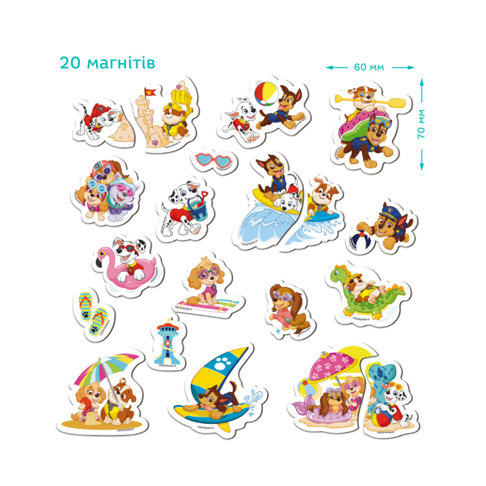 Пригласите ребенка в мир ярких игр вместе с магнитным набором “Paw Patrol Magnetic Set”! В комплекте 20 больших магнитов с любимыми героями мультсериала – Чейзом, Скай, Маршалом и другими отважными щенками. Каждый магнит изображает веселую сцену отдыха, пляжа или активных развлечений, стимулируя детскую фантазию и создание собственных историй.Преимущества набора:Большие детали: удобны для маленьких детей ручек от 3 лет.Магнитное основание: легко крепятся на холодильник, магнитную доску или другие металлические поверхности.Развитие творчества: помогает придумывать сюжеты, тренирует речь и воображение.Безопасные материалы: изготовлены из прочного картона с магнитным слоем.Отличный подарок для маленьких поклонников Paw Patrol. Собирайте все наборы магнитов и создавайте собственный мир приключений вместе с героями Щенячьего патруля!