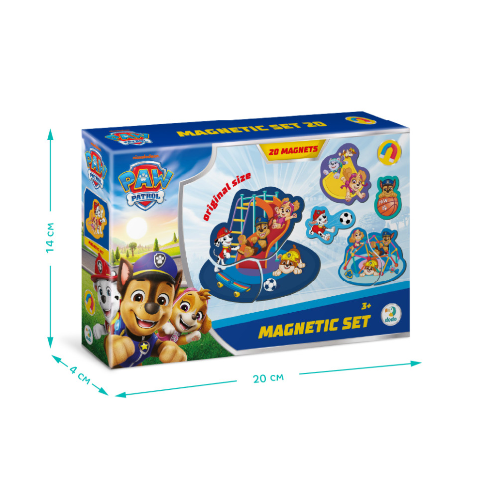 Пригласите ребенка в мир ярких игр вместе с магнитным набором “Paw Patrol Magnetic Set”! В комплекте 20 больших магнитов с любимыми героями мультсериала – Чейзом, Скай, Маршалом и другими отважными щенками. Каждый магнит изображает веселую сцену отдыха или активных развлечений, стимулируя детскую фантазию и создание собственных историй.Преимущества набора:Большие детали: удобны для маленьких детей ручек от 3 лет.Магнитное основание: легко крепятся на холодильник, магнитную доску или другие металлические поверхности.Развитие творчества: помогает придумывать сюжеты, тренирует речь и воображение.Безопасные материалы: изготовлены из прочного картона с магнитным слоем.Отличный подарок для маленьких поклонников Paw Patrol. Собирайте все наборы магнитов и создавайте собственный мир приключений вместе с героями Щенячьего патруля!