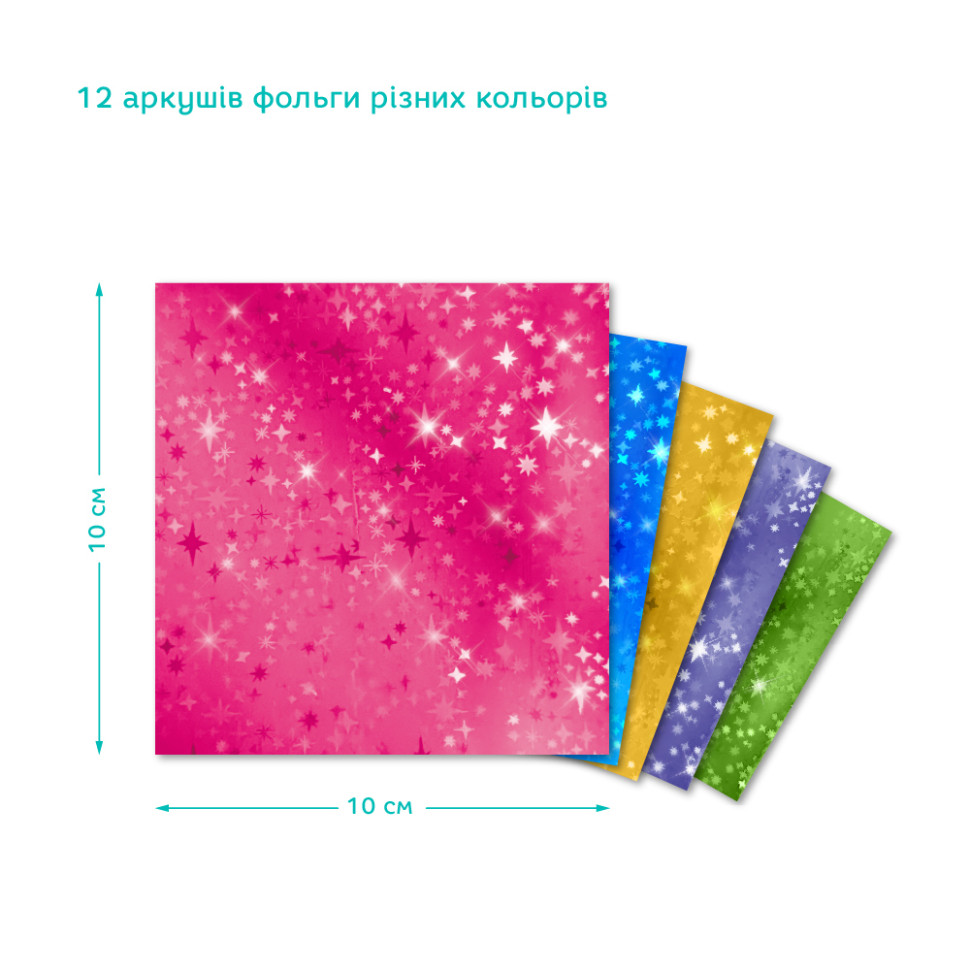 Комплектация: 12 разноцветных листов фольги (10 на 10 см) и 4 магнита (10 на 7 см).