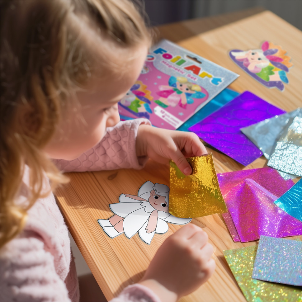 Подарите вашему ребенку волшебство творчества без всякого беспорядка! Набор для творчества Foil Art Magnetic Set от Dodo позволяет создавать блестящие магниты с единорогами, которые придадут яркие цвета и блеск любому пространству.