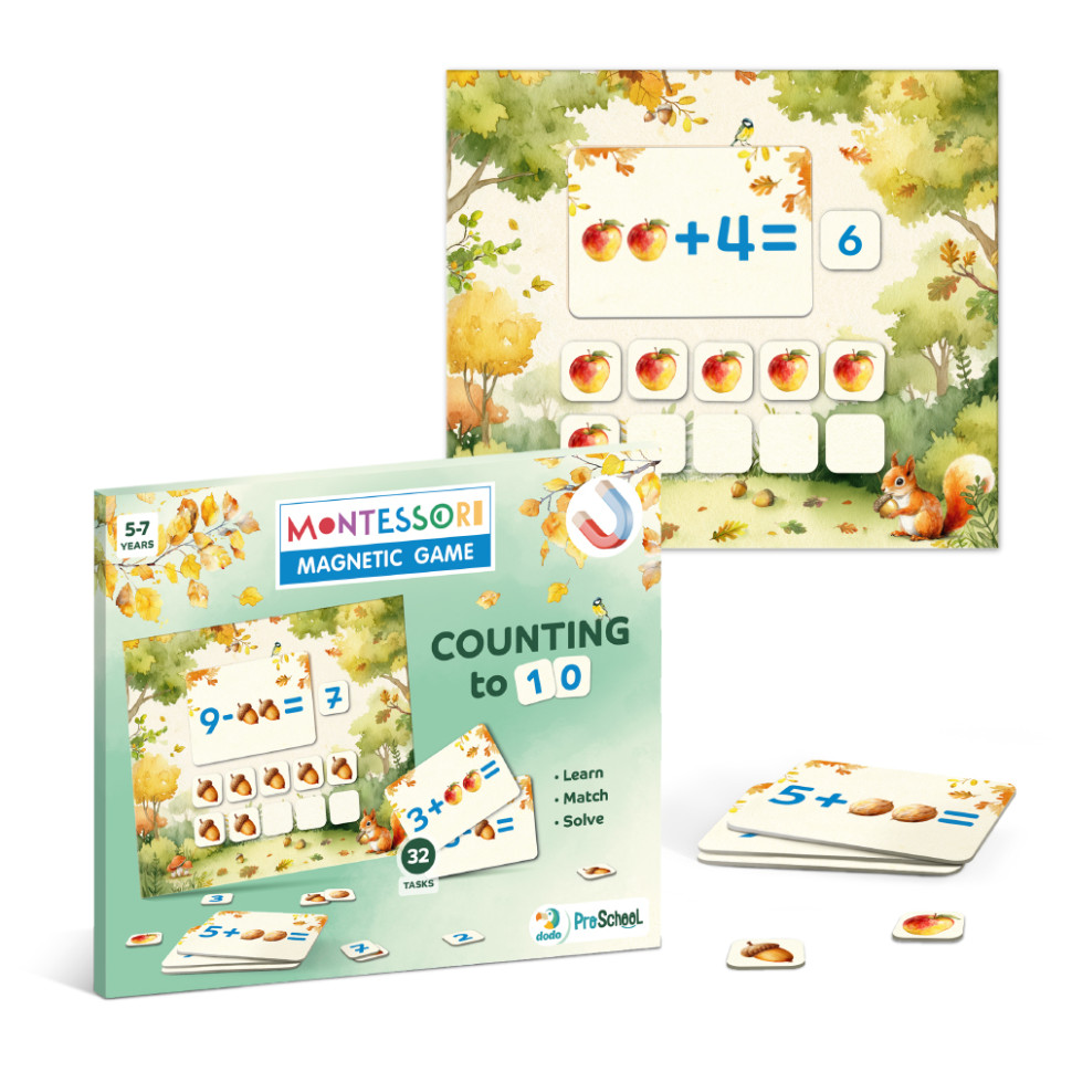 Развивающая магнитная игра Dodo «Счет в пределах 10» – это увлекательная обучающая игра, которая помогает детям освоить первые арифметические навыки через интерактивный процесс. Созданная специально для дошкольников и младших школьников, игра превращает изучение математики в веселую и мотивирующую игру.