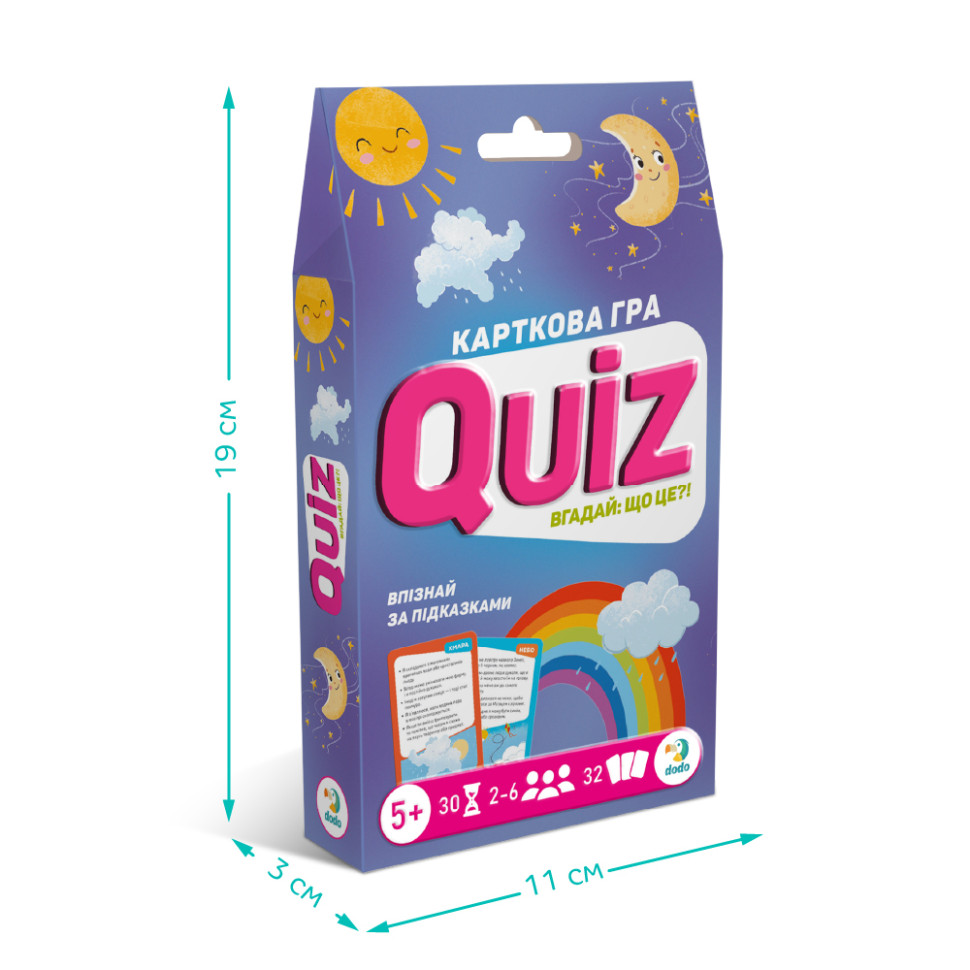 Quiz – это увлекательная карточная игра, которая превратит разгадывание загадок в веселое приключение! Попробуй по подсказкам на карте догадаться о ком или что идет речь. Каждый правильный ответ приближает тебя к победе