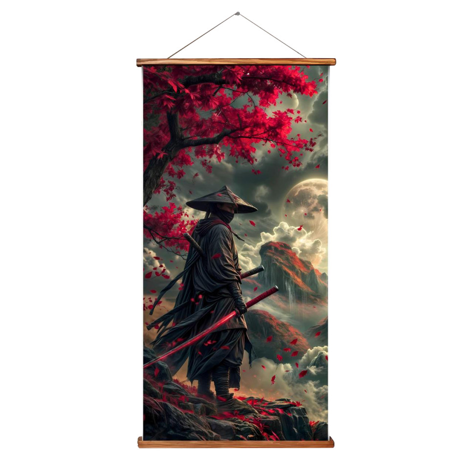 Интерьерная картина Гобелен "Японский самурай в цветах" OTM1037, 30х60 см