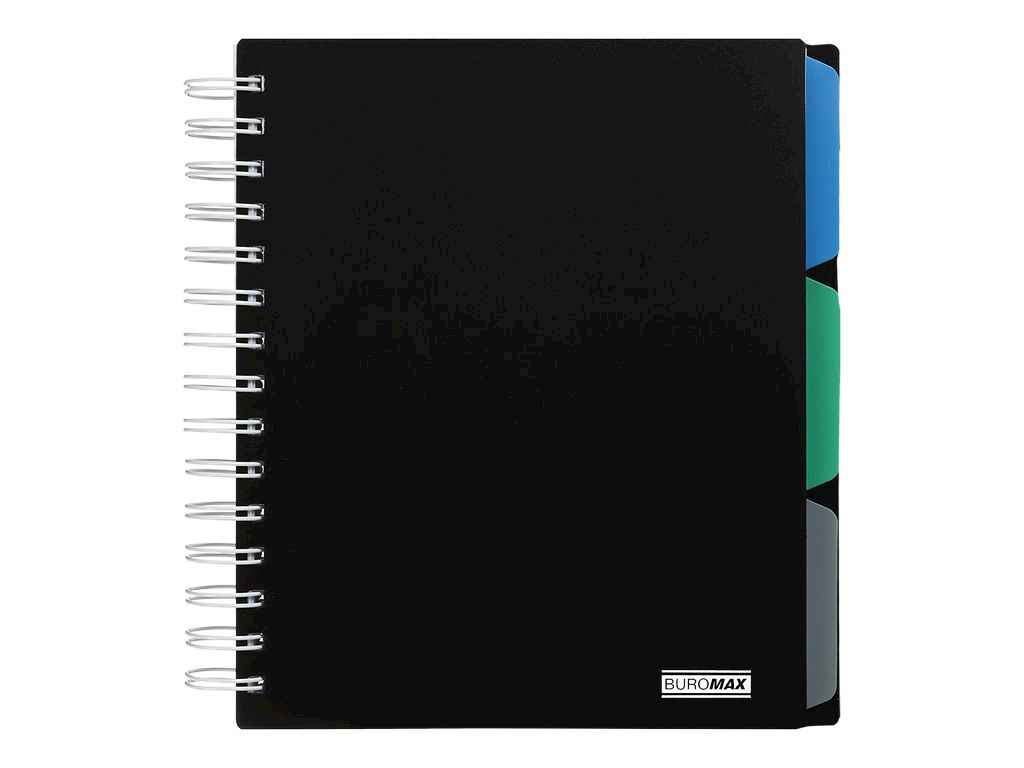 Зошит на пружині CLASSIC, В5 (170x205), 120 арк, клітинка, 3 розділювачі, пластикова обкладинка, чорний, ТМ Buromax, арт. BM.24355911-01