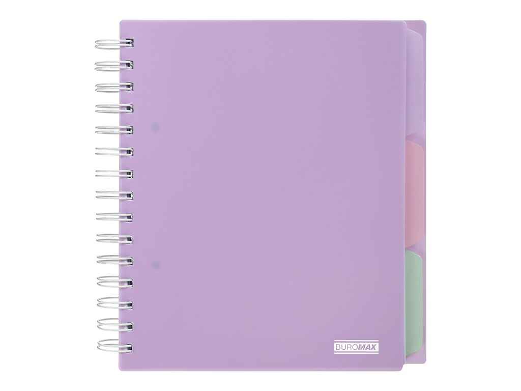 Зошит на пружині PASTEL, В5 (170x205), 120 арк, клітинка, 3 розділювачі, пластикова обкладинка, бузковий, ТМ Buromax, арт. BM.24355912-26