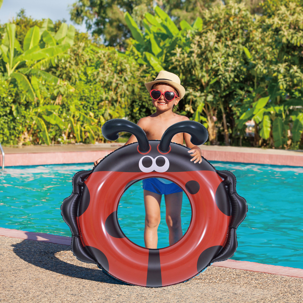 Яркий надувной круг в виде божьей коровки — идеальный аксессуар для отдыха на воде. Оригинальный дизайн с веселыми усиками и крылышками обязательно понравится детям и сделает купание еще более интересным.